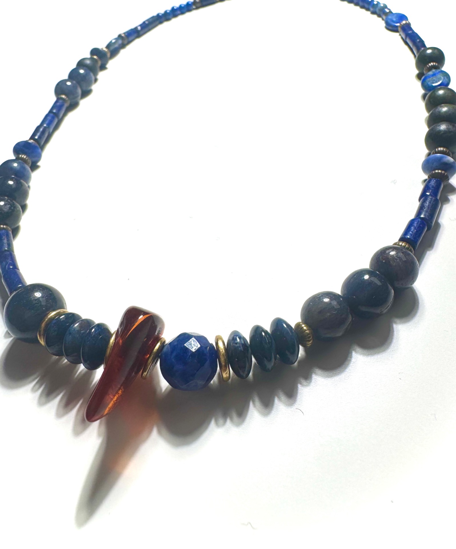 Fra serien “Heart to get”: En bøn i blåt. Disse meget blå, vintage lapis lazuli skal give dig åndelig ligevægt og kraft, men samtidig også fokus. Stenen er blevet brugt, både som den blå farve kunstnerne anvendte tidligere, som en tavle for over 3000 år siden, med en hyldest til en glemt gudinde, og selvfølgelig til smykker og amuletter. Kombinationen med det gyldne messing giver en god kontrast, men forhåbentlig også et tidsløst design, så du kan hruge smykket resten af dit liv.
